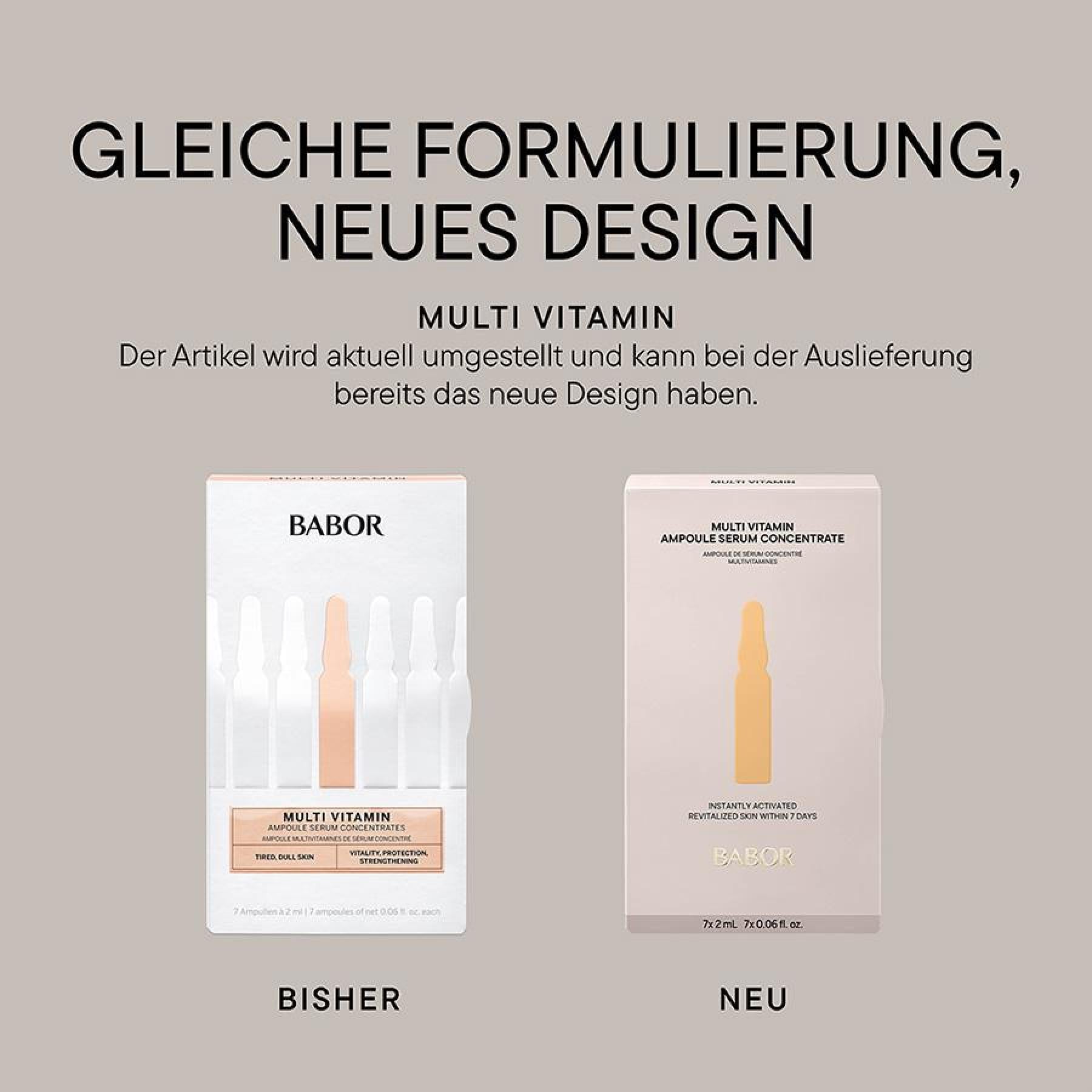 Die Multi Vitamin Wirkstoffe der reichhaltigen Ampulle sind der ultimative Vitamin Booster für mehr  Vitalität. Vitamin A, C, E, B5, B3 Calcium und Biotin liefern den Power Cocktail für gut gepflegte, geschützte und gestärkte Haut.